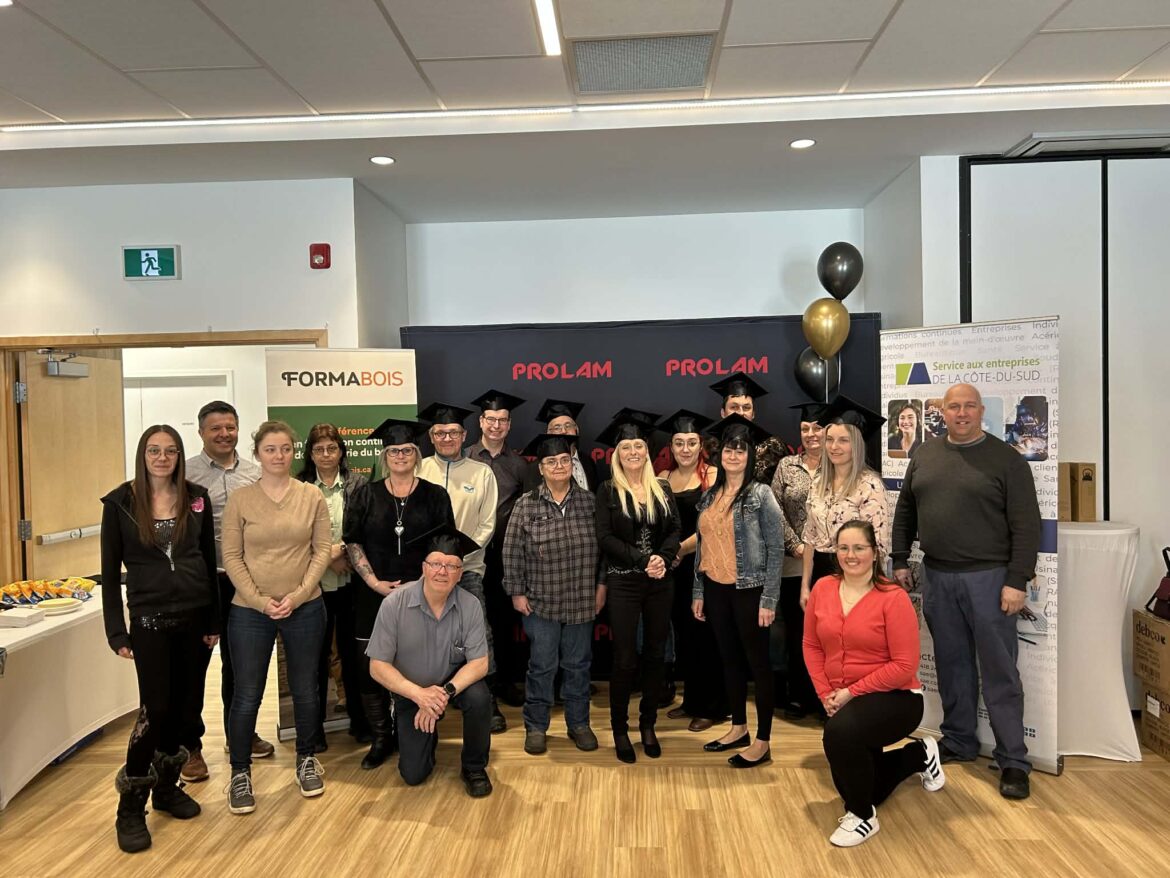 Le Service aux entreprises du Centre de services scolaire de la Côte-du-Sud annonce la diplomation de 25 travailleurs de l’entreprise Prolam, qui ont obtenu leur DEP en Opération d’équipements de production par la reconnaissance des acquis et des compétences.
