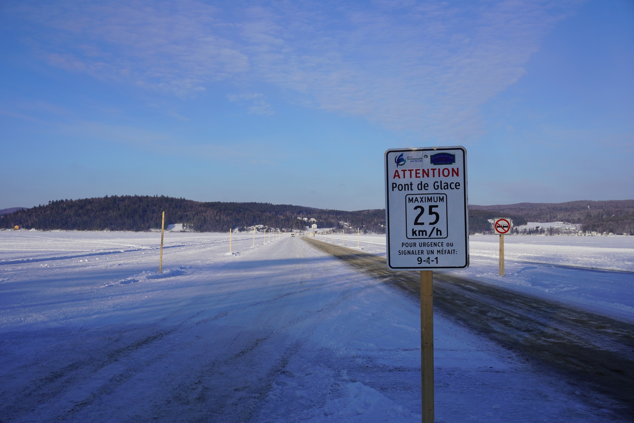Long de 1,5 kilomètre, le pont de glace traverse le lac Témiscouata sur sa largeur. Selon les années, sa durée de vie varie selon les conditions climatiques.