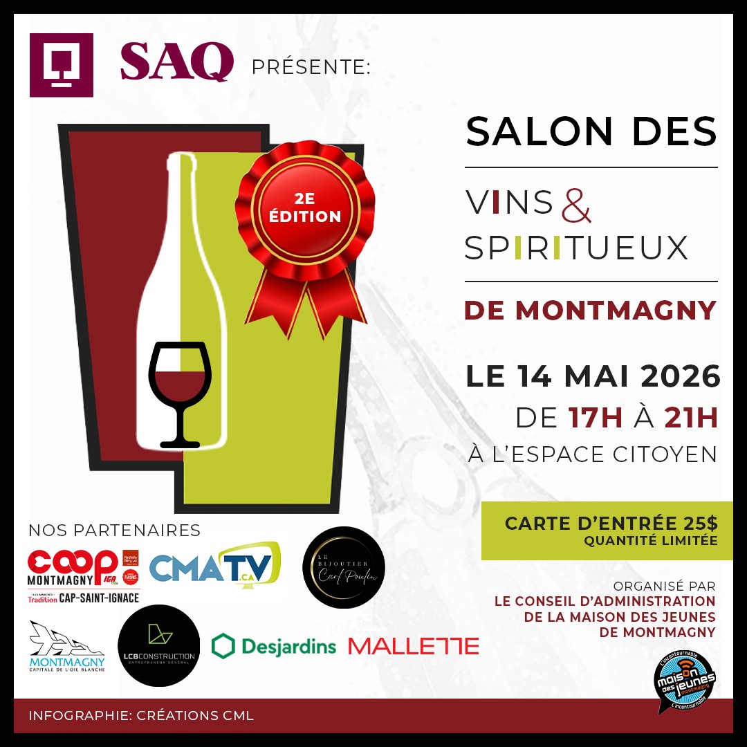 La Maison des jeunes L’Incontournable annonce la tenue de la deuxième édition du Salon des vins et des spiritueux de Montmagny.