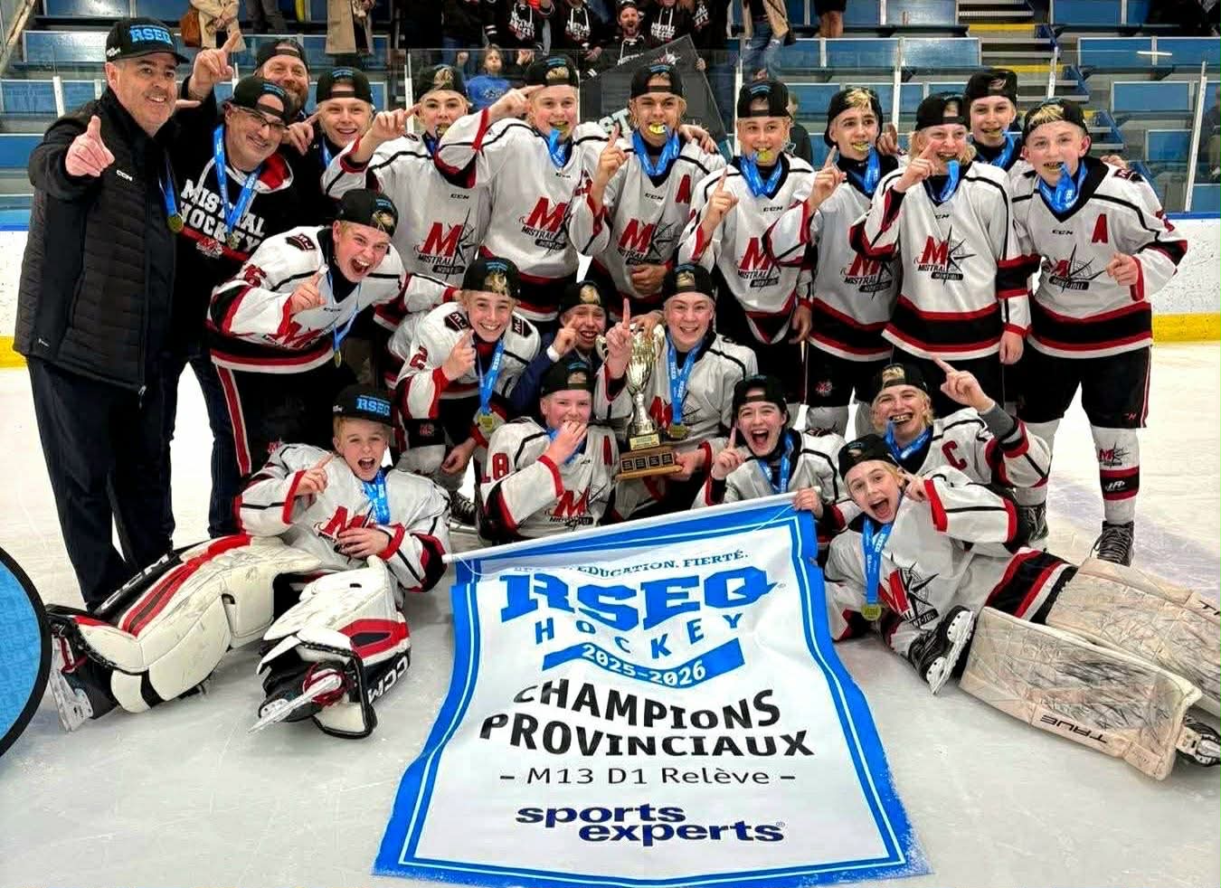 Le Mistral de Mont-Joli M13 D1 Relève a été couronné champion du Québec en connaissant un parcours parfait lors des championnats provinciaux de hockey scolaire présenté conjointement à Trois-Rivières et à Québec durant le week-end.