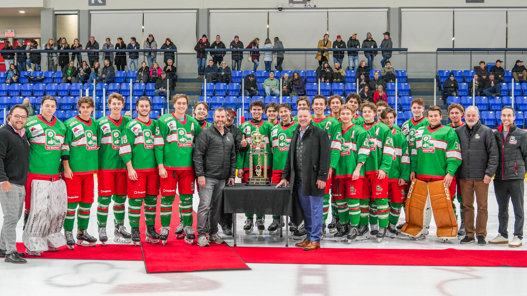 Pour l’occasion, le président de la Ligue de hockey junior B Chaudière-Appalaches (LHJBCA), François Loubier, était sur place afin de remettre le trophée des champions de la saison régulière aux Mariverains. Dominants tout au long de la campagne, les Beaucerons concluent la saison avec une fiche impressionnante de 25 victoires et seulement trois défaites en temps réglementaire, pour un total de 75 points.
