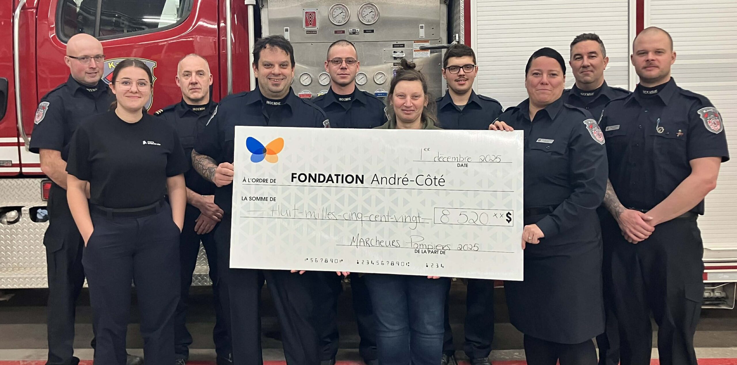 À La Pocatière, le Service de sécurité incendie KamEst a remis 8 520 $ à la Fondation André-Côté grâce à une marche de 38 km tenue le 13 septembre.