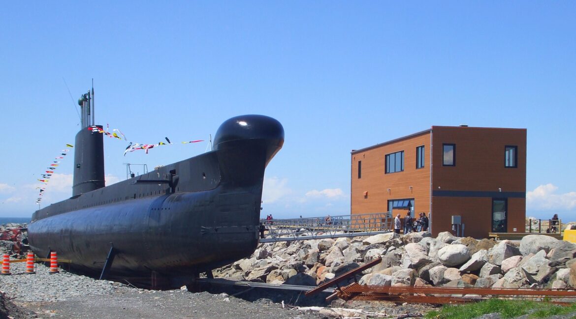 Les imposants travaux de soulèvement du sous marin Onondaga sont terminés, au Site historique maritime de Pointe-au-Père.