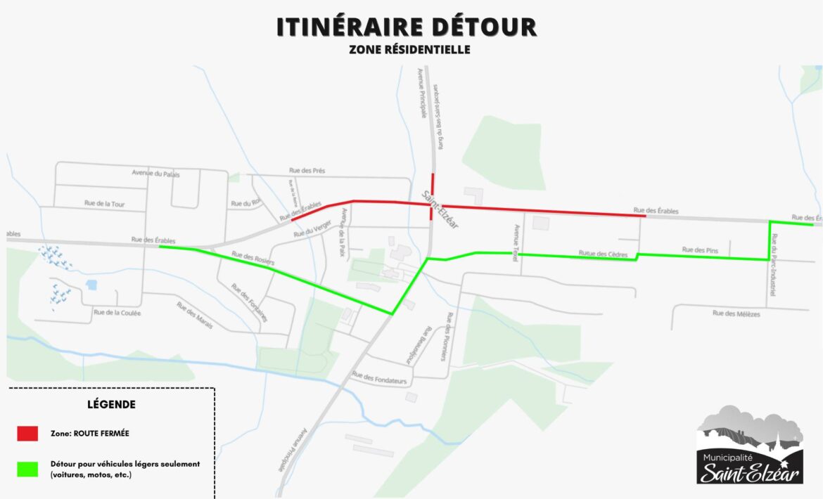 Le maire Hugo Berthiaume, dans une vidéo adressée aux résidents de Saint-Elzéar, reconnaît que l’été sera exigeant pour la population. La route sera complètement fermée entre la rue des Cèdres et la rue de la Reine. Des détours seront mis en place, incluant des trajets distincts pour les véhicules lourds.
