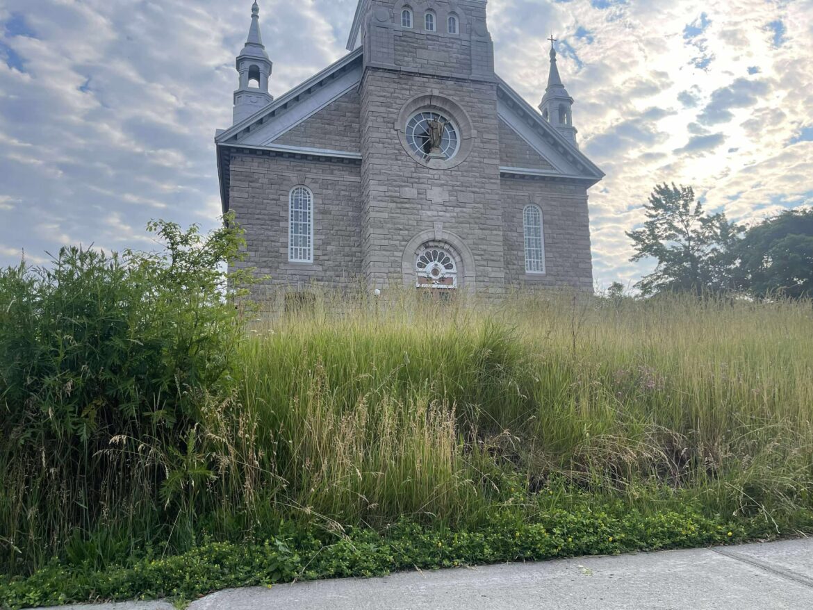 Le terrain des églises Saint-Ludger et Saint-François-Xavier à Rivière-du-Loup est dans un état lamentable en raison du gazon non entretenu.