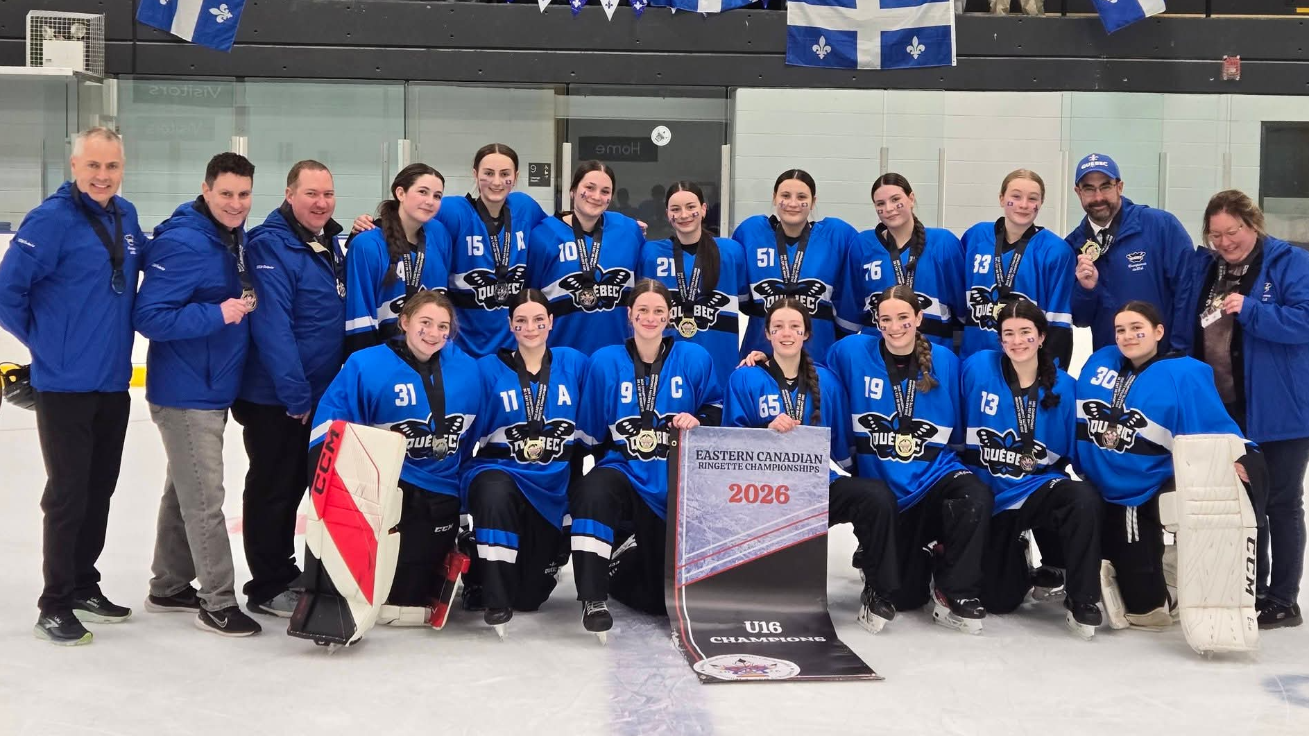 La formation beauceronne a dominé tout au long de l’année, terminant au premier rang du classement en saison régulière, remportant quatre médailles d’or en tournoi, en plus de décrocher le titre de championne provinciale. Ce titre lui a permis de représenter le Québec au Championnat de l’Est du Canada de ringuette, tenu du 16 au 19 avril dernier à Mississauga, en Ontario.